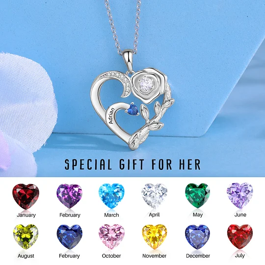 Mother's Day Day Gift Personalized Mother Rose Intertwined Heart Pendant Necklace