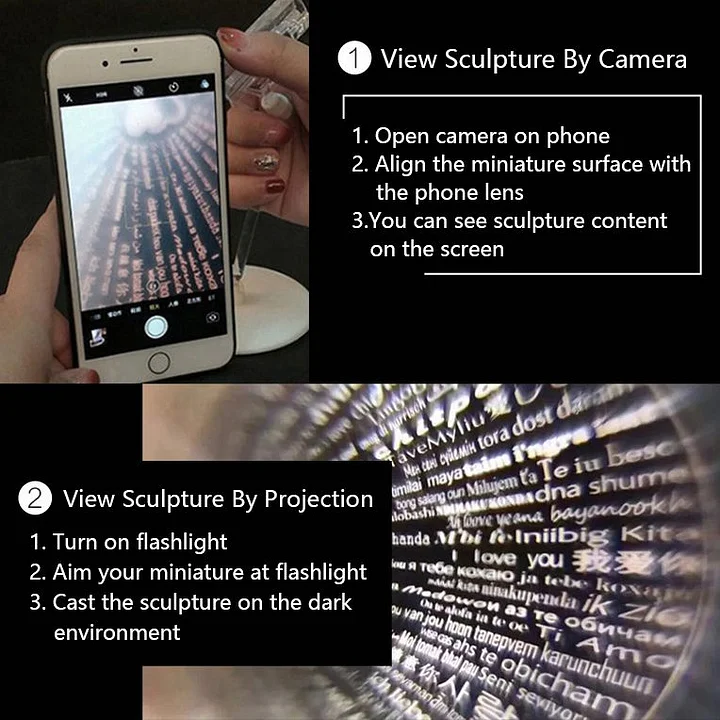 - PERSONALIZED: Uses nano-micro engraving technology to engrave a photo and "I Love You" in 100 different languages into the love stone.