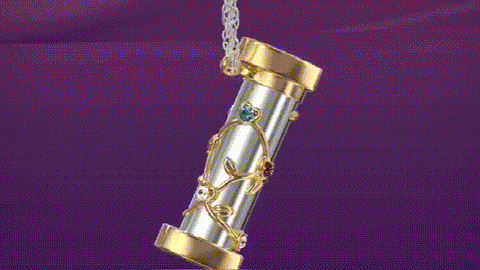 Beautifully handcrafted of stainless steel, this unique kaleidoscope pendant is wrapped with a delicate 24K gold ion-plated vine design featuring golden hearts set with sparkling colored crystals. Rotate the end cap as you look through the heart-shaped window, and you will see an ever-changing pattern of beautiful colors. The pendant is finished with a 24-inch chain and a beautiful poem card that reads: "My Wonderful Granddaughter So Radiant and Bright You Color My World with Love and Light I Love You!" Strong demand is expected for this distinctive jewelry design and it makes a meaningful granddaughter gift, so don't delay. Order now!